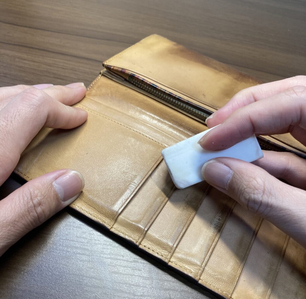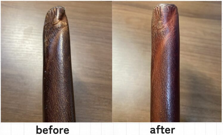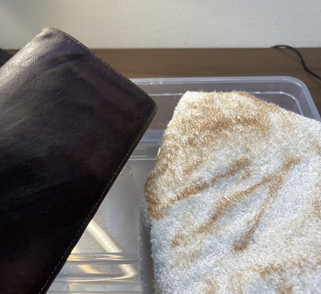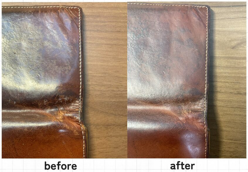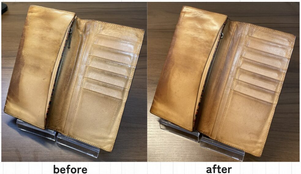 今回は表革の汚れが凄いので2回汚れ落としの工程を行いました。