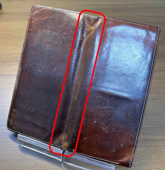 ただよく見ると表革のゆとりの革がひび割れてしまっています。
